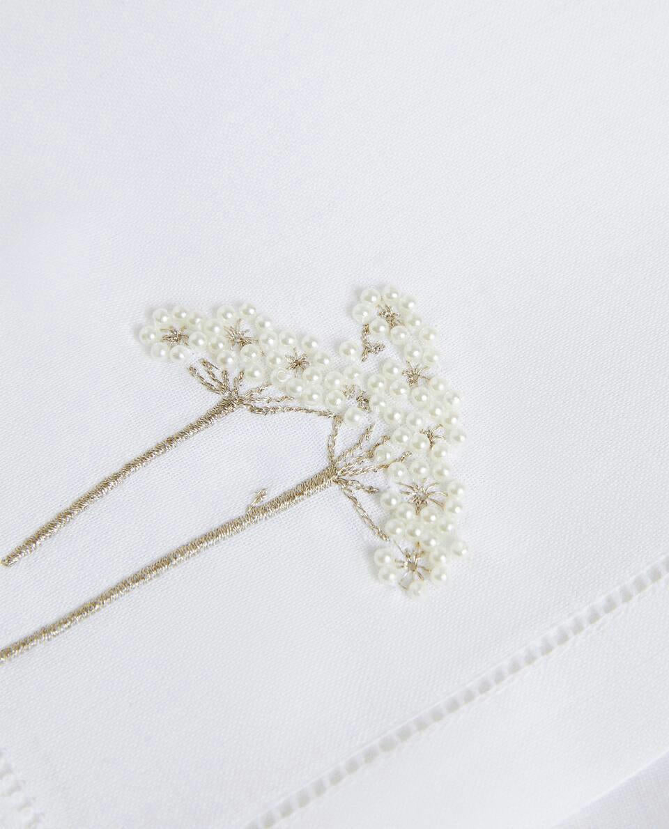 Ramie and cotton napkins with embroidered details with beads and hemstitching around the edge, for Christmas.Pack of 2.